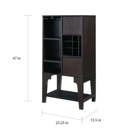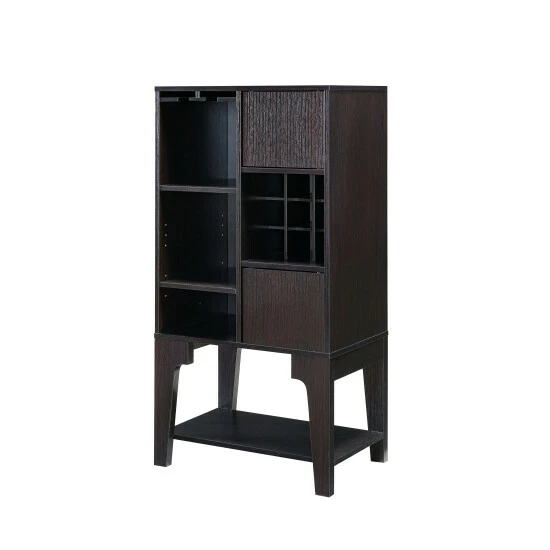 Turn every gathering into a party with this distinctive and convenient open-shelf buffet. The sleek and engaging design boasts a tall, slender profile to maximize floor space while lending a little something unique to your decor. The abundant storage spaces include glass racks and a nine-bottle grid wine rack to keep all your favorites close at hand.