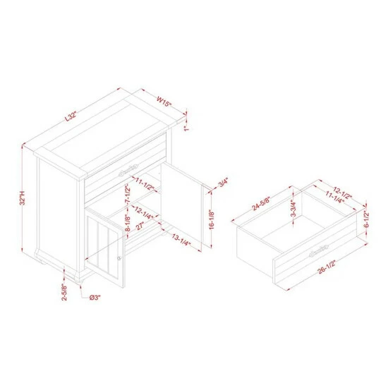 - Overall: 32 inches high x 32 inches long x 15 inches wide