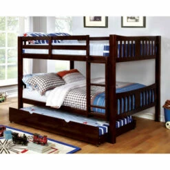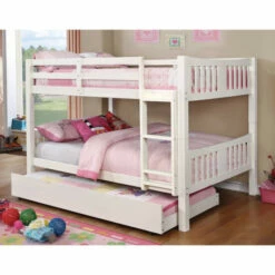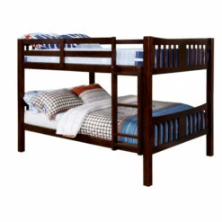 Provide sleeping space for up to four kids with this full-over-full bunk bed. Ideal for shared rooms and dorms, this Dai bunk bed from Furniture of America comes in your choice of finishes for easy integration into your child’s room. A fence-type guardrail keeps the top sleeper secure all night long, boasting a slight curve to the frame for aesthetic interest and flair. A study built-in ladder allows quick access to the top bunk for a sound slumber. Enjoy the array of colors available for this full-over-full bunk bed, allowing you to create a customized sleeping space with your favorite design elements.