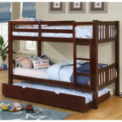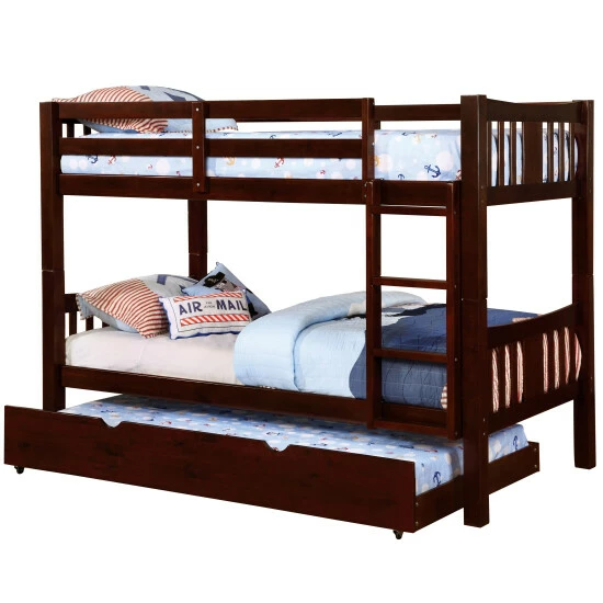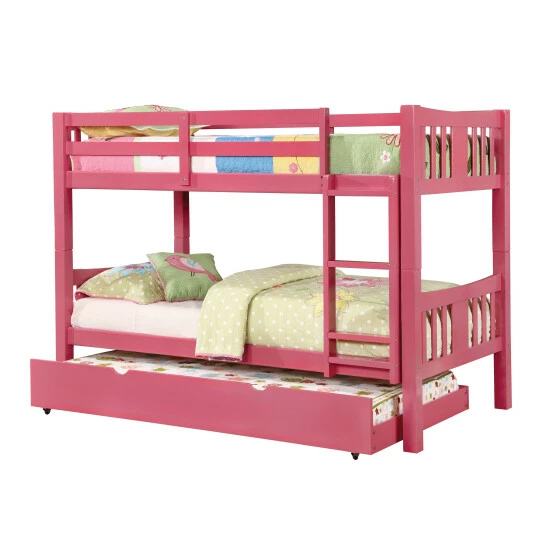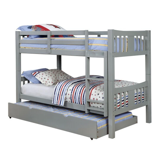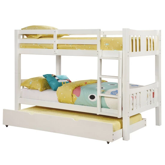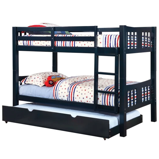 Structured and simple, the Dai Modern Two Piece Bunk Bed and Trundle Set makes the most of vertical space with its compact footprint. With its twin over twin design and extra trundle accessory, you can make the most of your space and provide lots of sleep space in a small bedroom or loft. The attached ladder provides easy access to the guarded top bunk for enclosed sleeping for little ones and peace of mind for you. Available in multiple colors to complement any decor palette, its slatted design coordinates beautifully with design styles from Farmhouse to Urban Industrial and everything in between.