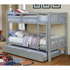 Structured and simple, the Dai Modern Twin/Twin Solid Wood Bunk Bed makes the most of vertical space with its compact footprint. With its twin over twin design, you can make the most of your space and provide lots of sleep space in a small bedroom or loft. The attached ladder provides easy access to the guarded top bunk for enclosed, safe sleeping for little ones and peace of mind for you. Available in multiple colors to complement any decor palette, its slatted design coordinates beautifully with design styles from Farmhouse to Urban Industrial and everything in between. Matching trundle is available separately to maximize sleep space.