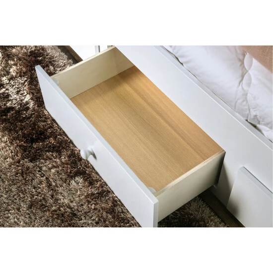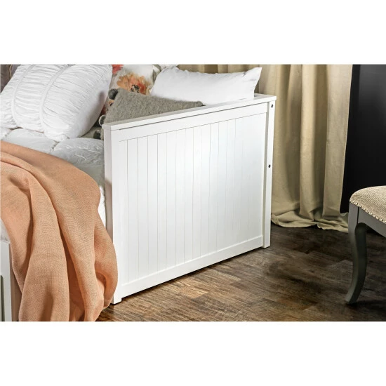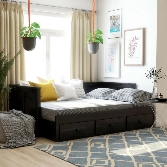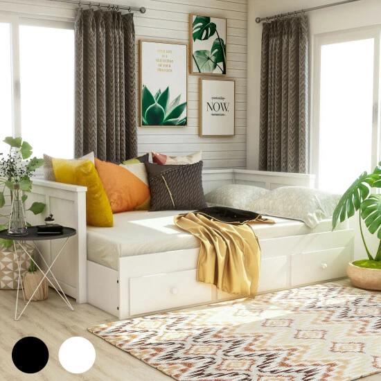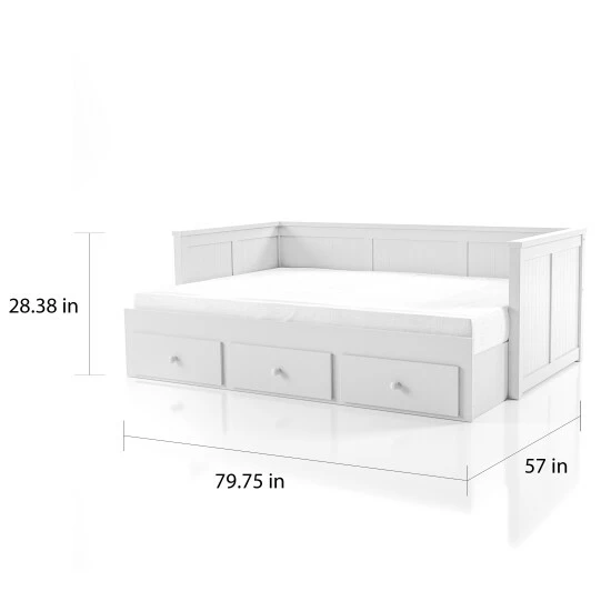 Experience versatile style, storage space, and comfort in one fell swoop, in this wood storage daybed. Three roomy, easy-glide drawers offer storage space galore, adorned with round knobs. Constructed from solid wood and wood veneers, this daybed delivers lasting beauty.