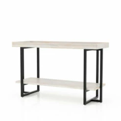 A transitional design balanced between industrial and French country makes for a darling addition with this sofa table. The table welcomes the opportunity to display an array of decor items in one place. Bring an amicable element to your entryway with this chic and charming table.