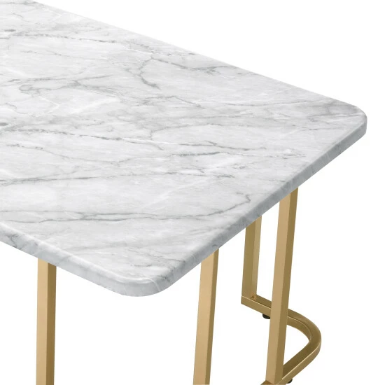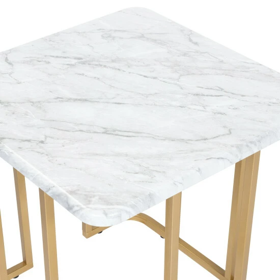 Bring a little glam to your living room with this sleek two-piece coffee table set with a luxe look. The set delivers a coffee table and a side table, each with a faux marble finish tabletop. The base of each table features two curved supports, each with four slim legs for a cool sculptural effect. A gold finish on the base polishes off the design with a bit of gleaming, indulgent style.