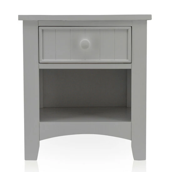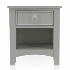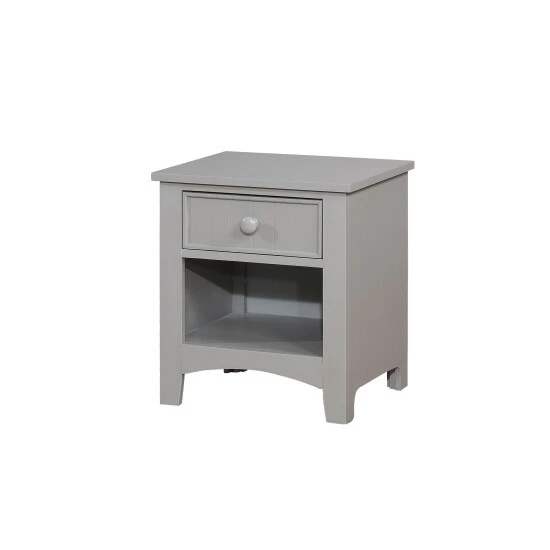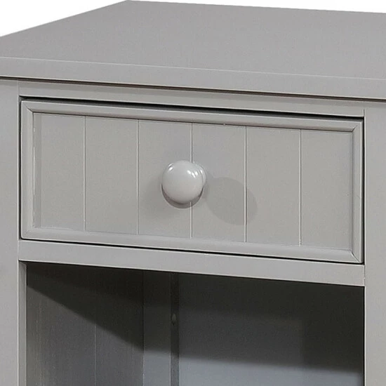 With a neutral tone and soft lines throughout, this cottage solid wood single drawer youth nightstand from Furniture of America is just what you and your child have been looking for. Available in a calming grey finish that makes for a serene oasis, this nightstand features ample tabletop space for things like a lamp, clock, and more. The single drawer features a lightly carved panel design with a matching tone round knob and, along with the open shelf below, provides plenty of storage area for clothes, toys, devices, and more. Tapered feet and a rounded design under the shelf offer support and flair to the otherwise straightforward design. It’s a delightful nightstand that adds charm to any child’s bedroom.