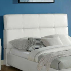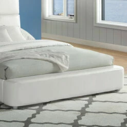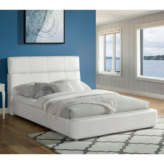 The ultra-modern design of this white platform bed adds a glamorous edge to bedroom décor. This bed is wrapped in rich faux leather with stylish grid tufting. The design is made to be used with a matching three-shelf bookcase that’s perfect for holding books and other bedside essentials. Crafted with high-quality solid wood construction, this durable design is made for lasting use.