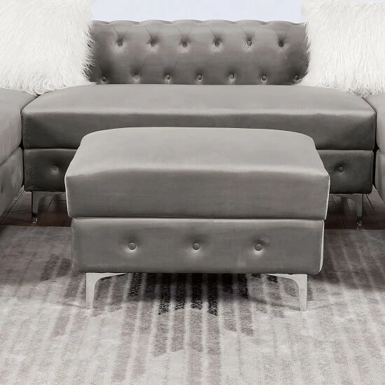Ultra-soft fabric pairs with tuxedo styling to create a bold, comfortable spot to relax. This contemporary ottoman pairs deep button tufting a smooth top that fits perfectly with the matching sectional to create additional lounging space.