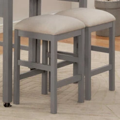 Take your breakfast bar or kitchen island to new style heights with this set of two farmhouse style, counter height stools. Each boasts a backless profile with a light gray finish and a plush beige seat cushion complemented with a built-in footrest.
