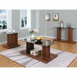 Reimagine your modern living are or family room with the lustrous elegance of this contemporary rectangular end table. Its smoked black glass tabletop adds a sense of mystery to a bold, sculptural base brimming with eye-catching flair.