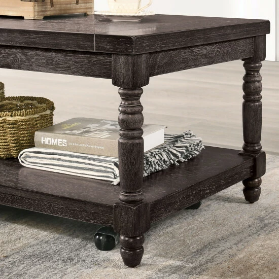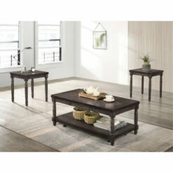 Your living room will thank you for injecting it with this set of rustic style coffee and end tables. Perfect for the home that wants some natural flourish, the plank style top and bottom pieces mean you have style and storage. The weathered grey finish and tasteful leg craftsmanship make them something you can hang your pride one. Easily decorated with your favorite paperweights and houseplants, arrange these tables at your leisure.