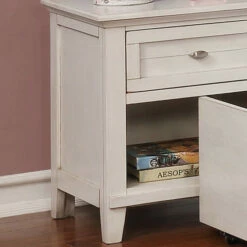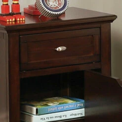 The simple design of this nightstand gets the job done with style and function. A single drawer moves with smoothness on metal center glides, opening to reveal storage for small items. A convenient lower shelf offers organization for books and other bedside needs. The attractive wood finishes are accentuated with modern metal drawer pulls.