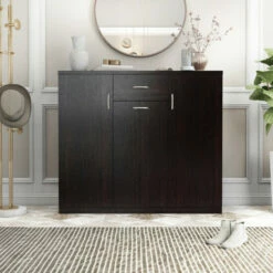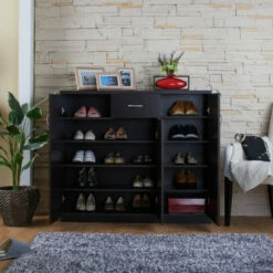 Keep all of your shoes organized out of sight with this sleek shoe cabinet from Furniture of America. This cabinet holds up to 30 pairs of shoes on 10 shelves hidden behind cabinet doors. One small drawer on top is the perfect spot for keys, wallets, and other odds and ends.
