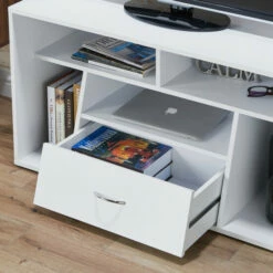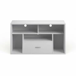 - Two (2) side shelves provide quick access storage for movies, games and more