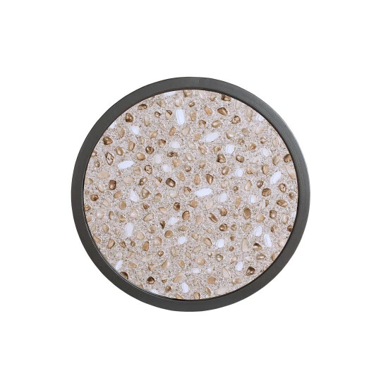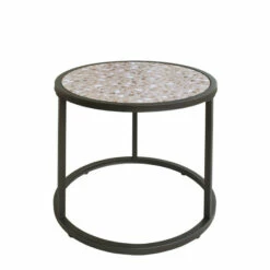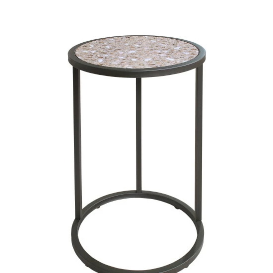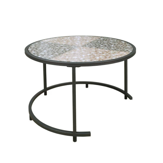 Let your home be the place of relaxation with this set of occasional tables. These tabletops have a stone-like pattern of beige and aqua blue that evoke a beach resort. Their gunmetal powder-coated frames are not only dent and scratch resistant but nesting as well.