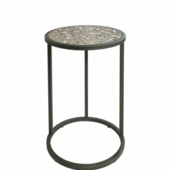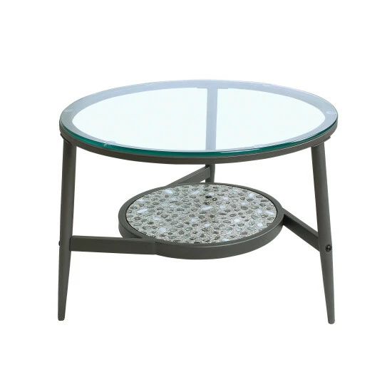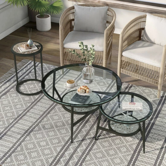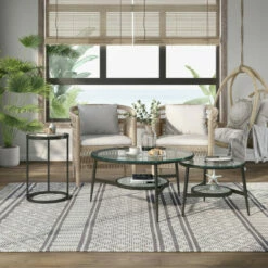 Let your home be the place of zen with this set of occasional tables. These tempered glass tabletops and stone-like pattern shelves evoke a seaside retreat. Their gunmetal powder-coated frames are dent and scratch.