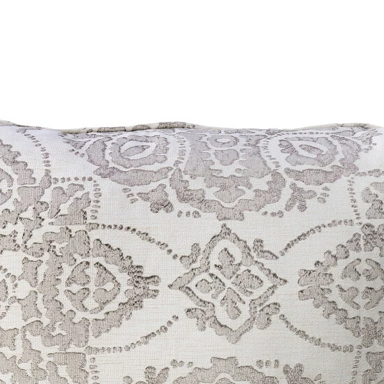 Floral medallions in a textured jacquard set the tone for a well-curated living space. This accent pillow mixes global and traditional design elements with its symmetry and delicate floral pattern.