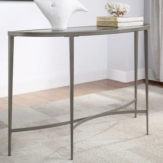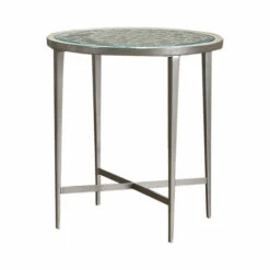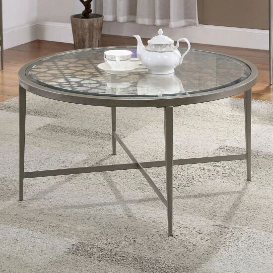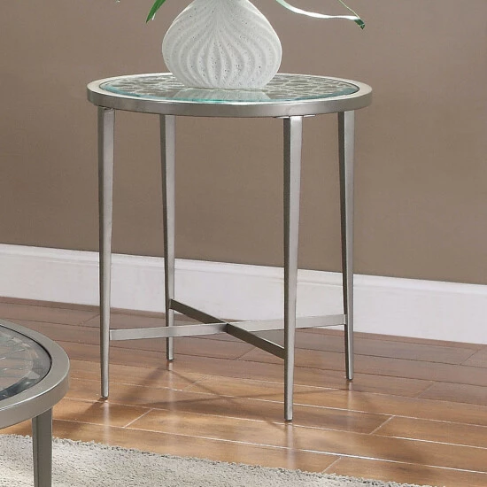 Provide a sophisticated place to put down drinks and snacks with this three-piece accent table set from Furniture of America. Created for the Fage collection, this pair features steel legs to provide firm support to the tempered glass round tabletops. A heart motif adorns the glass tops for a sweet and special touch for your living space. Attractive and durable, the X-shaped base ensures extra stability. This three-piece set combines its metal structure and thin tapered legs with the silver satin-plated finish to make this set the ideal centerpiece in your living area. Choose this set to add contemporary and modern appeal to your space.