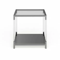 - Contemporary modern end table with unique clear Lucite-like frame with chrome accents