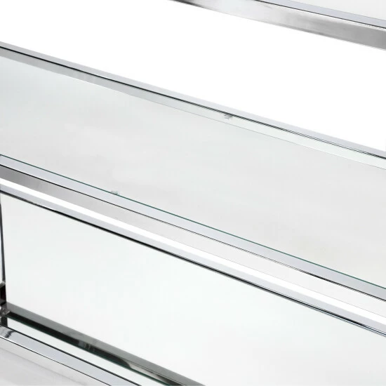 - Bottom shelf has mirrored surface