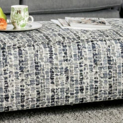 Introduce contrasting tones forming a crisp palette, adding the Fame transitional ottoman from Furniture of America to a casual space. Covered with a busy, bold print fabric in a black, Grey, and white palette, this tasteful ottoman serves as a fitting complement to a relaxing seating ensemble. Its classic rectangular silhouette features piped edges over a medium-density foam cushioning. Dark finish block wood feet enhance its contrasting palette and embellish the transitional look of a central room focus. Choose this ottoman to offset a bold, dark solid seating ensemble, or place it solo in a compact library or reading space.