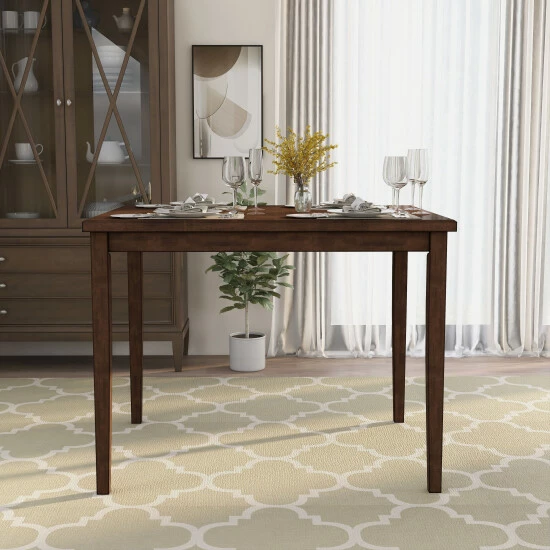 Come home to the warm brown cherry finish counter height table, and admire the style of your eating area day after day. The eye-catching wood grain details of this retro counter height dining table add an aesthetic allure that improves your entire dining room. It’s hard to miss the simple rectangular top, giving you plenty of space to host small dinner parties and enjoy time with friends. The slim tapered legs scream mid-century modern design for a fun, clean structure the whole family will love. Bring this cherry wood counter height into your table and watch transformation happen right before your eyes.