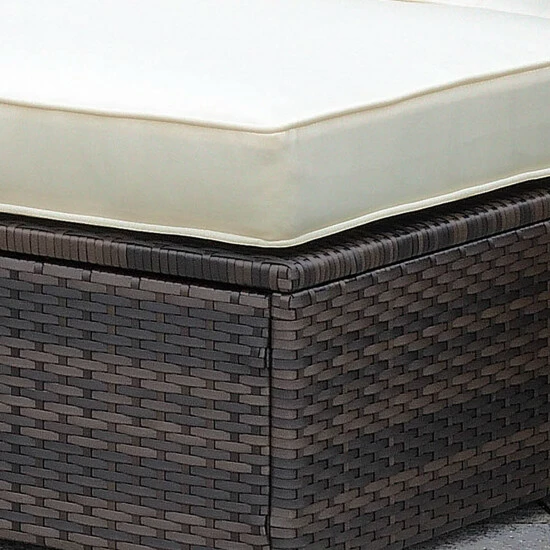 The Furniture of America Fene Modular Outdoor Weather Resistant Ottoman is designed to give you endless customized options. This modular ottoman has stylish cushioning wrapped in durable polyester canvas. Neat welted trim gives this brown and beige ottoman a tailored appearance. Conveniently UV and water resistant, the faux rattan and aluminum frame brings a desirable upgrade to your outdoor space.