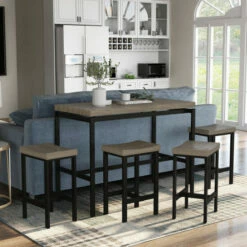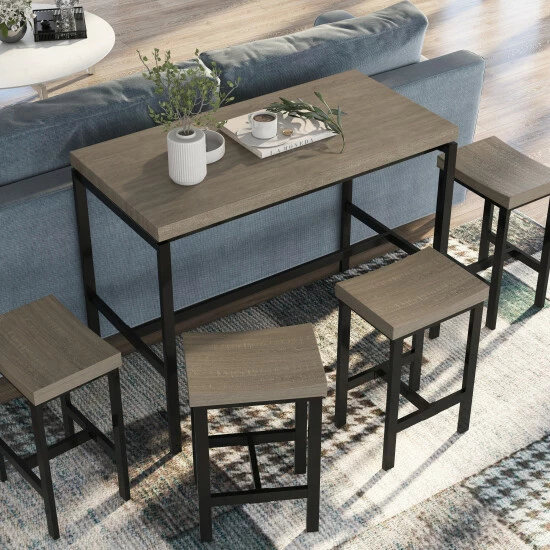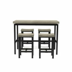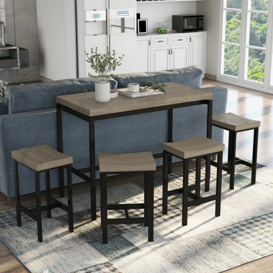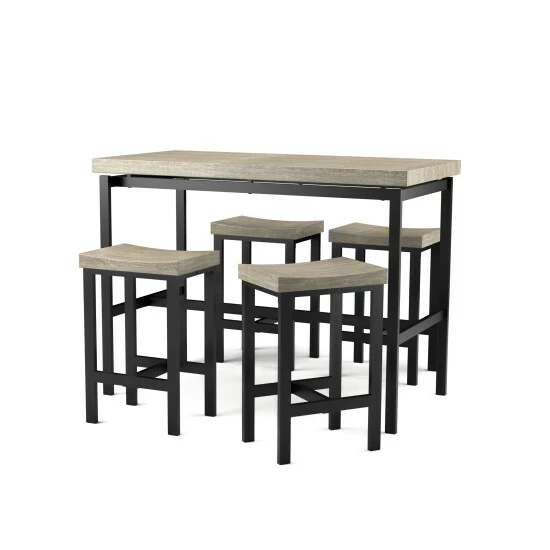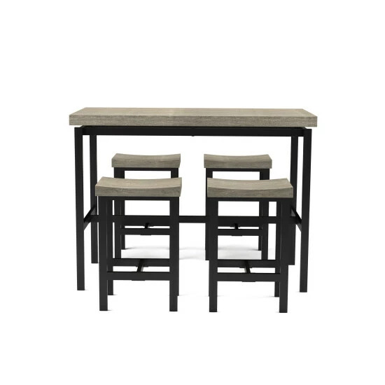 Lend charming industrial flair to your space with this contemporary counter height dining set. A natural tone top is met with a rich black frame for a touch of depth, and the durable design holds up to years of use. Curved wooden stools provide comfort for fun gatherings like family breakfasts or game nights. High enough to watch television and great for small spaces.