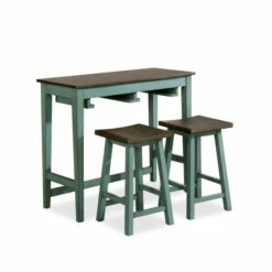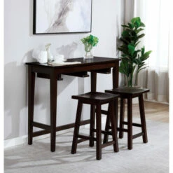 Top off the decor in your home bar or entertainment room with this transitional 3-piece bar table set. Featuring a counter-height table and two bar stools in solid wood, this space-saving set features a bold silhouette from the solid wood legs on each piece. It also includes an enclosed stool rack design and curved seats for a set that’s as stylish as it is convenient.