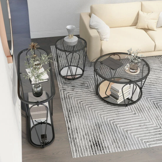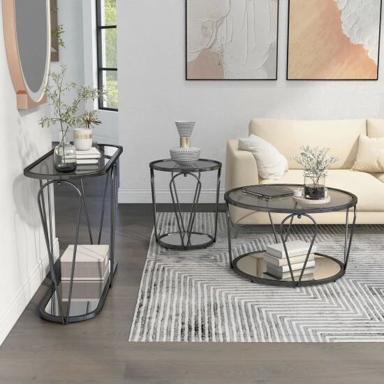 - Includes 1 coffee table, 1 end table and 1 sofa table