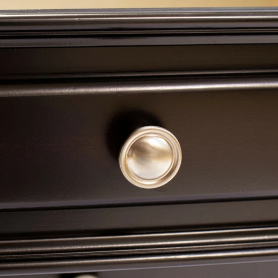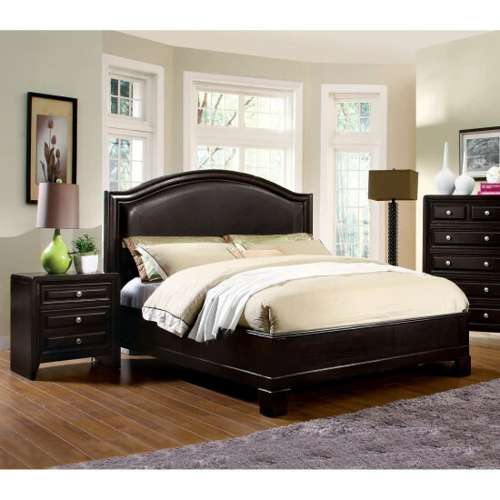 This contemporary bedside companion will leave you feeling uplifted from its style and spacious storage options. Made by Furniture of America for the Gant collection, this is an espresso nightstand that features a lifted design that accentuates the two large spacious drawers. The rich espresso finish also allows the metallic drawer pulls to shine beautifully. Made with a wood frame with metal and veneer, the drawers on this nightstand boast lineal modeling accents for a hint of character. Its sturdy frame is supported on tapered legs for stability. Giving a hint of rustic style with modern elements, choose this espresso wood nightstand to enhance the function of your transitional bedroom.