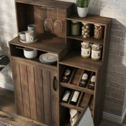 A dazzling fusion of metal and distressed walnut-finished MDF makes this buffet and wine rack a sturdy and elegant design that radiates rustic appeal with a cool, industrial edge. With ample shelf space and wine racks galore, this piece is ideal for anyone who entertains.