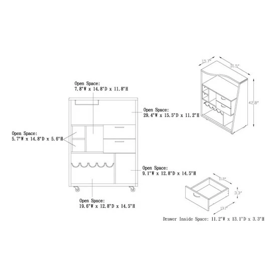 - Mini bar dimensions: 42.8 inches high x 31.5 inches long x 15.7 inches wide