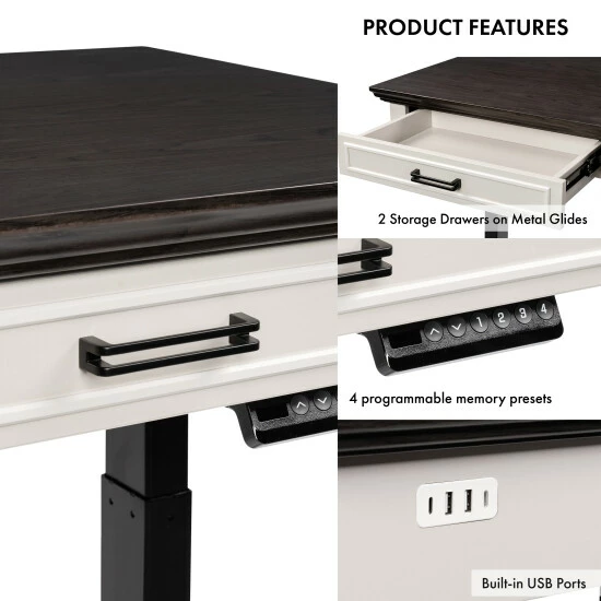 - ELECTRIC POWERED: USB Type-A and Type-C for Apple devices are built into the right side of the desk