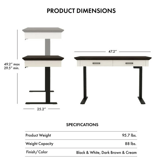 - Overall: 29.5-49.2 inches high x 47.2 inches wide x 25.2 inches deep