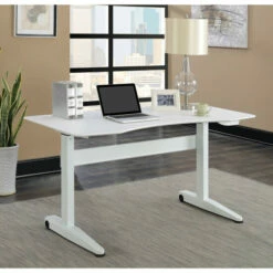 Achieve a simplistic modern look with this lift computer table with three classic color options and handy adjustable height. Made by Furniture of America for the stunning Glidene collection, the sturdy metal frame is accented with a curved spacious top to leave ample room for all office needs. Perfectly sleek and modern, this desk brings you a spacious tabletop for work and studying. Its extremely simplistic shape and style allows it to blend flawlessly with many different types of decor. Supported on sturdy and bold legs, this piece is available in three finished for a customized appearance to your living area.