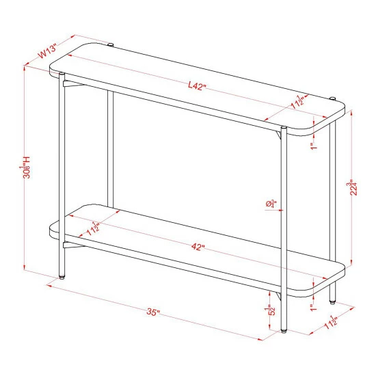 - Overall dimensions: 30 inches high x 13 inches wide x 42 inches long