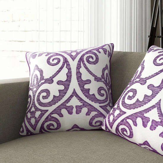 Accentuate your futon or sofa with these playful throw pillows. These pillows’ vibrant purple accents and enlarged motifs give your decor a bold, contemporary look, while the feather filling offers plush, comfortable support.