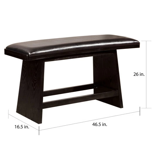 Slide up to a casual breakfast or quick cup of coffee with this counter-height bench from Furniture of America. Upholstered in smooth faux leather, this modern bench offers comfortable seating for your everyday dining enjoyment. Cozy foam padding and sturdy, integrated footrests let you linger for as long as you like. Sturdy, wooden craftsmanship ensures strength and reliability that’s made to last for years to come. An angular frame in a rich, black finish adds a striking touch of style to bring your decor to life. Place this counter height bench with a matching table and chairs, sold separately, to complete your dining ensemble in sophisticated style.