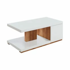 The Harima contemporary three-piece accent table set is a study in the architectural flair. This set creates a visually enticing effect perfect for a casual living room. Delivering a bright palette, its sleek two-tone finish combines white and natural wood finish. Clean, linear styling delivers a chunky tabletop on each piece, with the coffee table offering an integrated shelf behind a cabinet door and a matching sofa table cabinet concealing three spacious shelves.