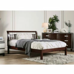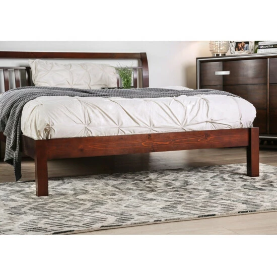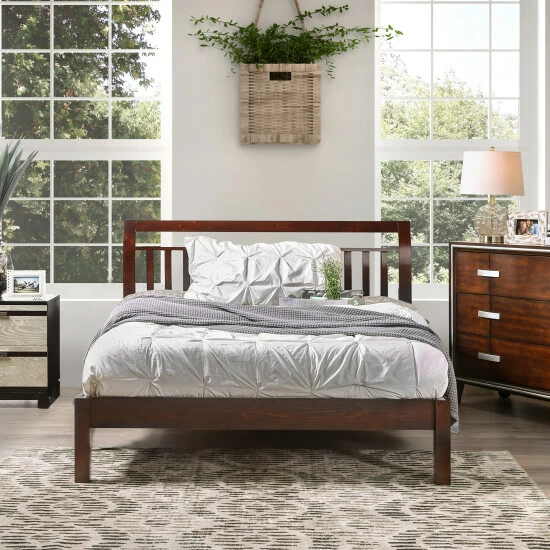 Update your bedroom with this farmhouse style slatted platform bed. Clean lines work well in a sleek sleeping space, whether your decor leans toward contemporary or even rustic and industrial. The bed features a framed headboard with a graceful curve that adds elegance to your bedroom.