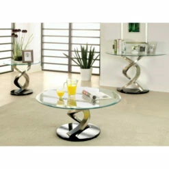 Enchant your guests with this artistic and delightful accent end table for the Helena collection, made by Furniture of America. The unique double helix pedestal bases boast a twisted appearance for an elegant and unique appeal for your living space. The metal base provides sturdy support for the tabletop, made of 8mm black beveled glass, all while adding a touch of graceful curvature to your living space. The round tabletop brings plenty of space to display your most prized decor items, reading materials, and more. With its modern and contemporary flair, this glass and metal end table brings plenty of style for all types of living room designs.