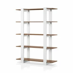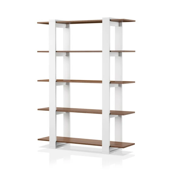 Display your favorite items and books on this modern walnut 5-tier display bookshelf. This bookshelf is built with five tiered shelves in a stylish walnut finish and a space-saving design. The platform base provides ample support and sturdiness, allowing you display your vast book collection with confidence. This bookcase creates a modern and streamlined appearance in your living space or office