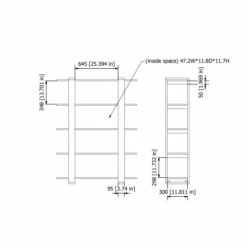 - Shelves: 13.7 inches high x 47.3 inches wide x 11.8 inches deep