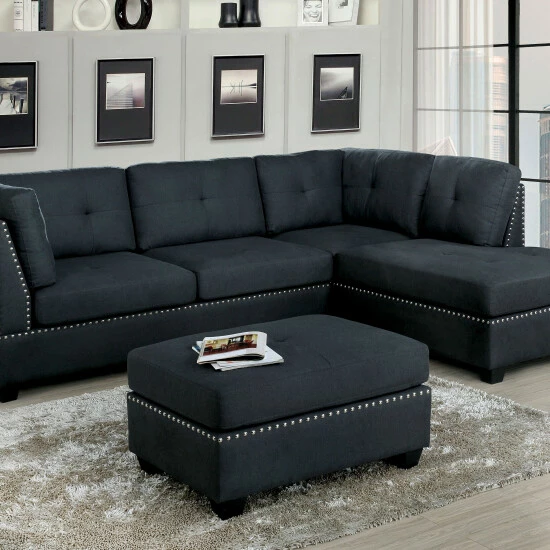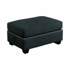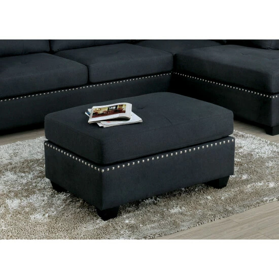 Complete your space with this stylish, contemporary ottoman from Furniture of America. The Herg ottoman features soft linen-like fabric upholstery in a lovely, neutral Grey color that’s sure to blend beautifully with your existing decor. Glamorous, gleaming nailhead accents elegantly enhance the design to add a special touch of polish and lovely, decorative flair. The solid wood and wood veneer construction of this piece offers exceptional sturdiness and stability, while the padded seat and rectangular shape combine for a versatile serving or seating option. This stylish ottoman sits on thick, tapered wooden legs to round out its design with quality and style.