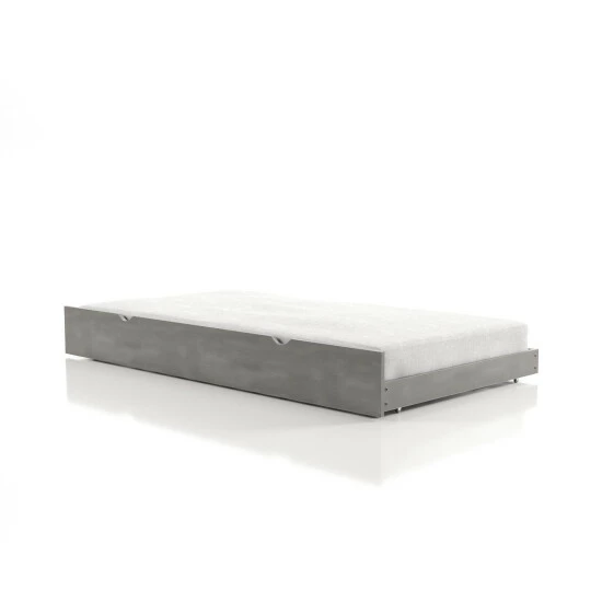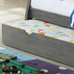 Help your kids host fun sleepovers with this Hily trundle from Furniture of America. The twin-size frame fits under a bunk bed, so you can pull it out to welcome an overnight guest. With its antique-finished front panel, this trundle blends into the bed frame between uses. Cut-out handles serve in place of hardware, making it easy to slide this trundle bed out for use as it’s supported on wheels. This piece comes in two different color finish options including antique grey and antique white. This makes it a versatile wood twin size trundle to fit with many different types of youth bedroom themes.
