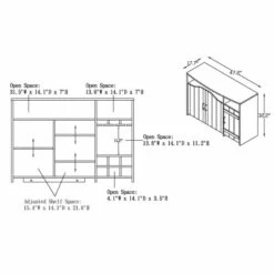 - Left-facing open shelf: 7 inches high x 31.5 inches wide x 14.1 inches deep