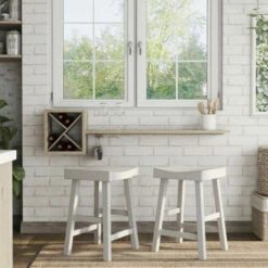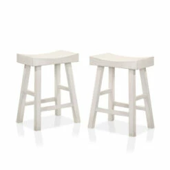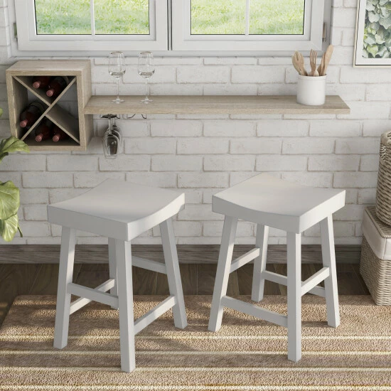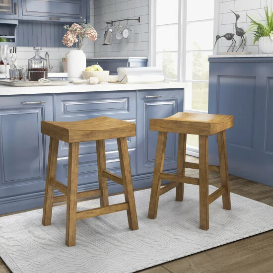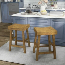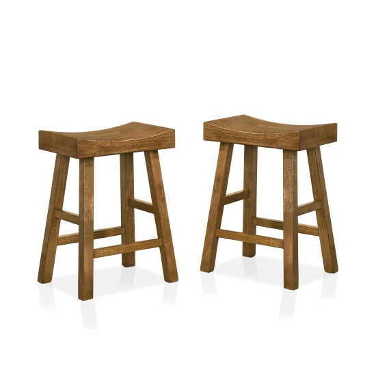 Have a seat on this set of two transitional wood backless stools in your kitchen or home entertainment area – even makes a great temporary seat in any living space when unexpected company arrives. Each stool is fashioned from rubberwood in your choice of delightful finish to suit your tastes or decor. Each seat is contoured for a comfortable experience, with solid block legs adding stability and handy footrests convenience.