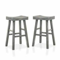 Pull up this set of two transitional wood backless counter-height stools to your kitchen counter or home bar and enjoy good times. Each stool is fashioned from rubberwood in your choice of delightful finish to suit your tastes or decor, with rustic wood grain details. The seat is contoured for fit, with solid block legs for sturdiness and handy footrests for convenience.