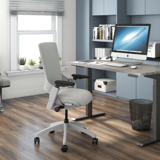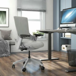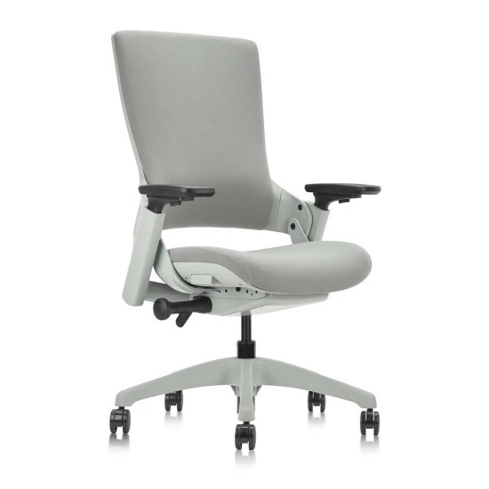 This fully adjustable ergonomic desk chair is built with a patented adaptive system that functions on a seat back linkage structure. A lumbar support has a two-inch height adjustment range, while the 3-dimensional armrest has a height adjustment button and can be modified horizontally for your elbow width on a 40° rotation.