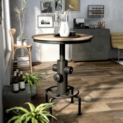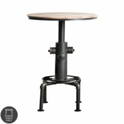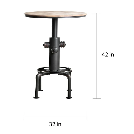 Elevate your rustic or rugged bar or dining decor with this charming, fire hydrant-inspired round bar table. This table showcases a striking sturdy metal base complete with hand-painted copper-colored detailing that adds richness and warmth while highlighting inspired design elements. Wood tabletop construction contrasts with the dark metal to seat 2 people. This table is designed with utmost charm, including a fire hydrant style center support and pipe inspired legs. Barstools can be purchased separately.